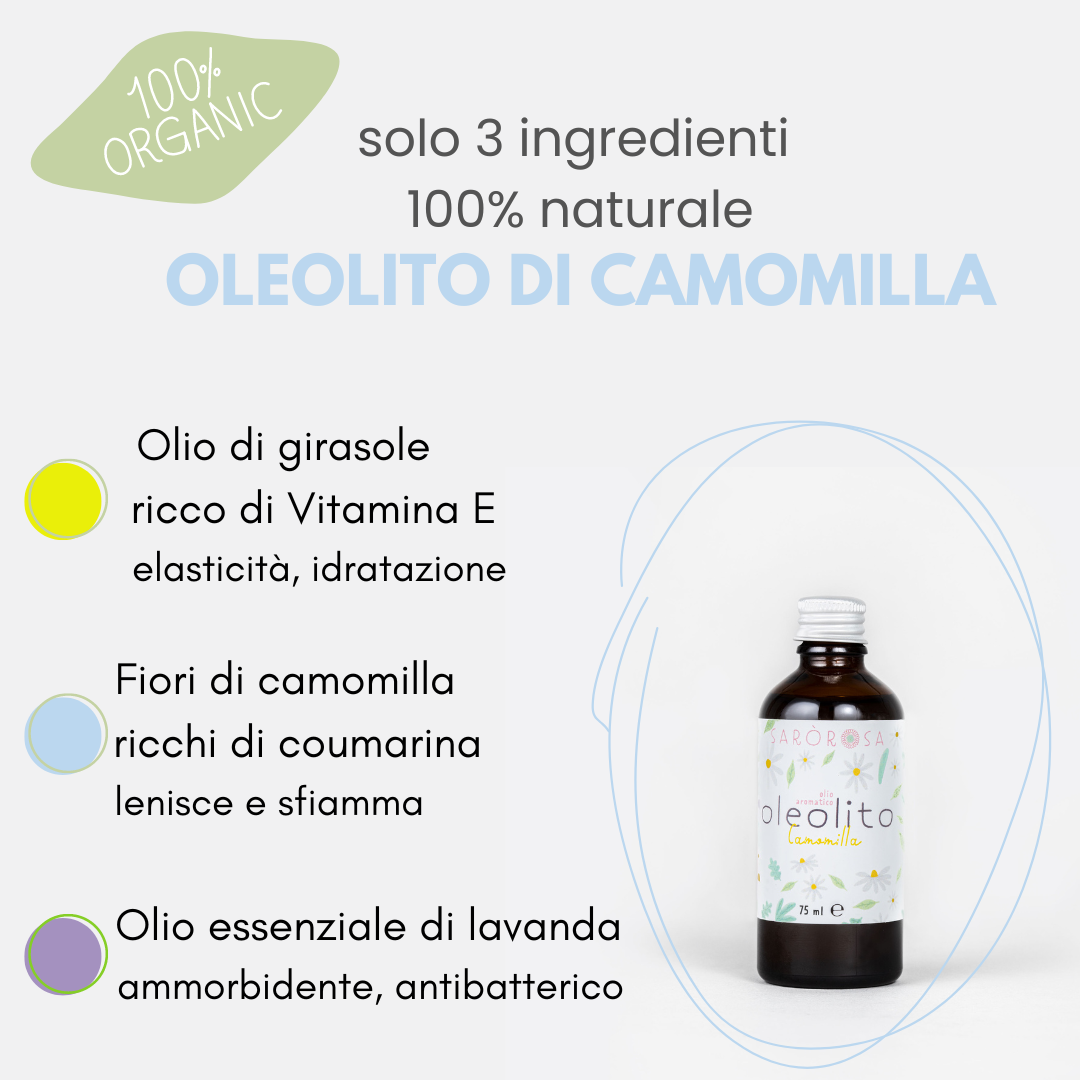 INGREDIENTI: Olio di girasole, fiori di camomilla, olio essenziale di lavanda