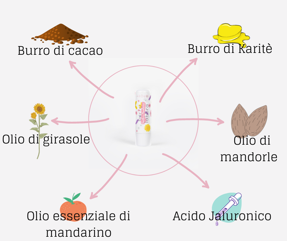 Balsamo per labbra dalle straordinarie proprietà nutrienti, ammorbidisce e idrata le labbra screpolate, ottimo da usare quotidianamente, anche più volte al giorno, per mantenere le labbra nutrite, dal piacevole aroma di mandarino .